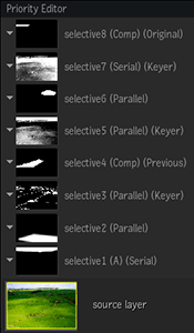 Select Parallel to blend parallel Selective nodes, grouped in the Priority Editor, in an additive process.