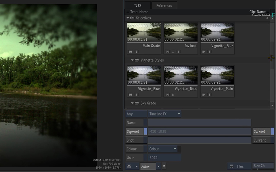 On the Tangent Arc and Element panels, use the new EXPLORER page to save Timeline FXs and Image Selectives.