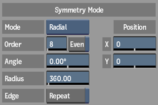 Select the type of symmetry effect to apply to the transformation. Additional parameters are displayed in Radial mode.