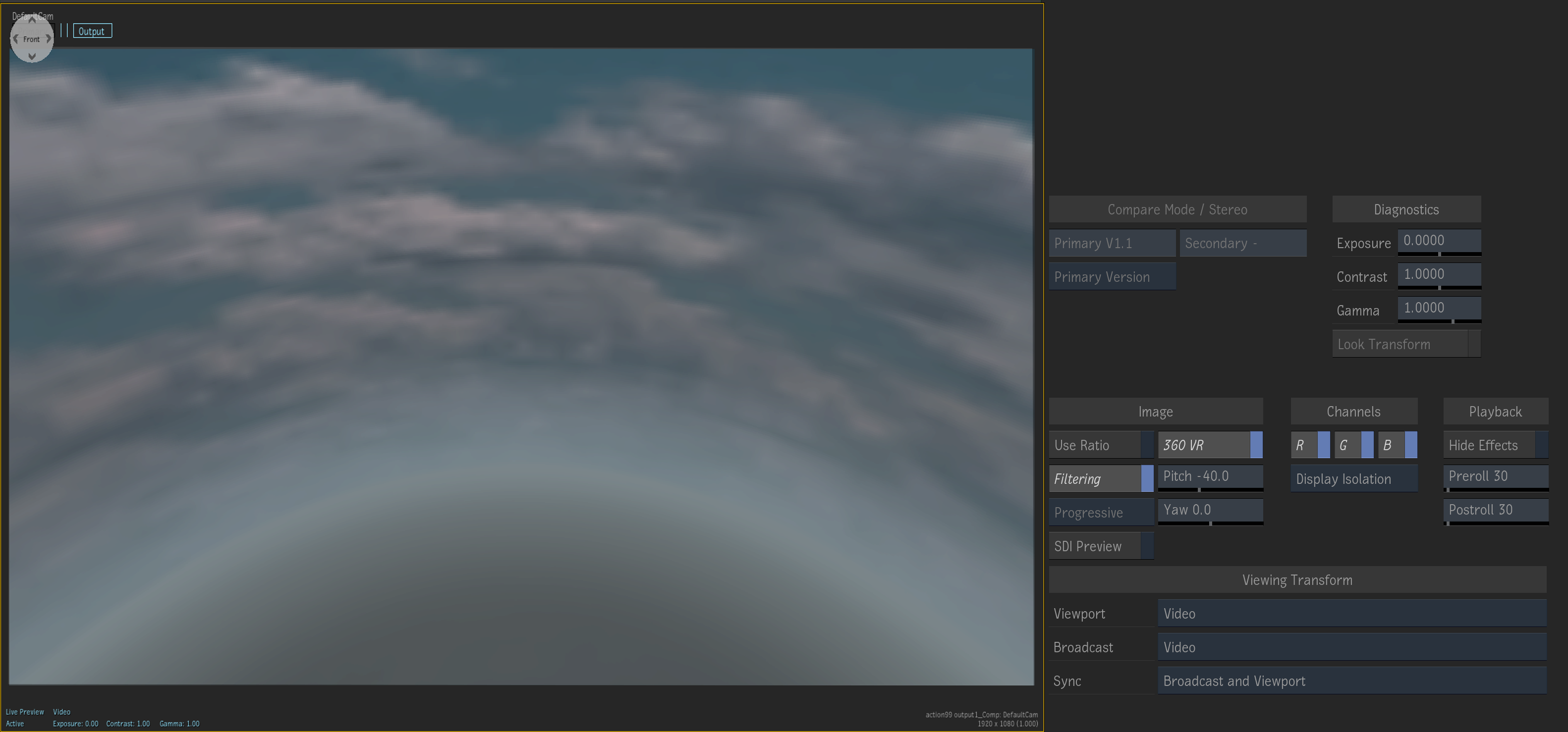 The 360 VR mode is a tool that allows you to properly visualize a latitude/longitude image and navigate the image, within a 360 degree environment, in the Player / Multiview Viewport.
