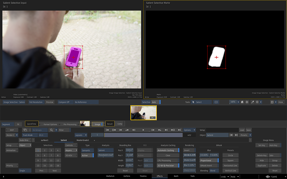 Use the cursor to move and resize the bounding box to focus the Salient keyer on a specific object.