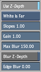 Depth Map settings can be used to invert colour values in the Z-depth map for reuse with the 3D Blur node.
