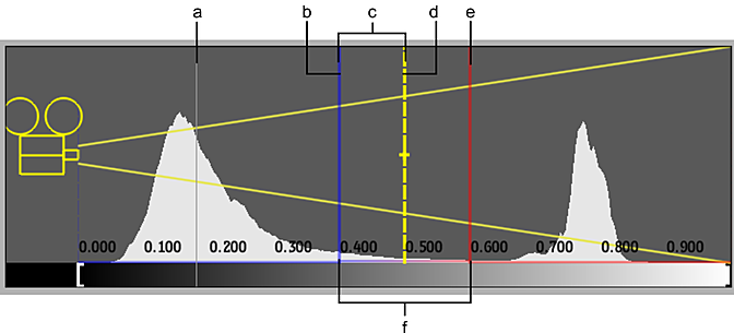 Displays a vertical zoom value for the histogram to display. You can zoom horizontally by pressing Ctrl+spacebar and dragging left or right in the histogram. To pan horizontally, click spacebar and drag left or right in the histogram. Editable.