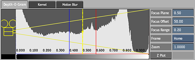 Depth blur effects control the amount of blur based on a depth of field matte. Depth blur settings are displayed in the Depth-O-Gram tab.