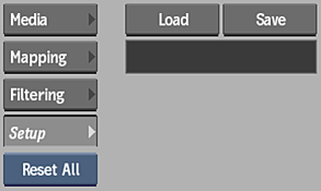 Available in the Media, Mapping, and Filtering submenus. In the Setup submenu, only Reset All is available.
