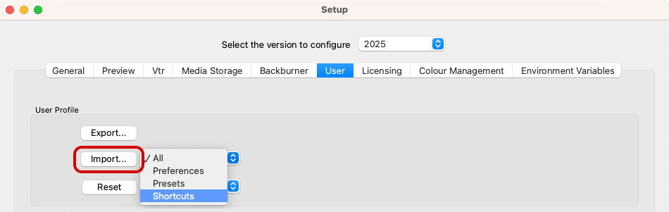 Keyboard Shortcuts, Presets, and Preferences can be exported from the Setup application.