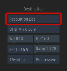 Resolution List | Select a resolution from a drop-down or manually set the values. |