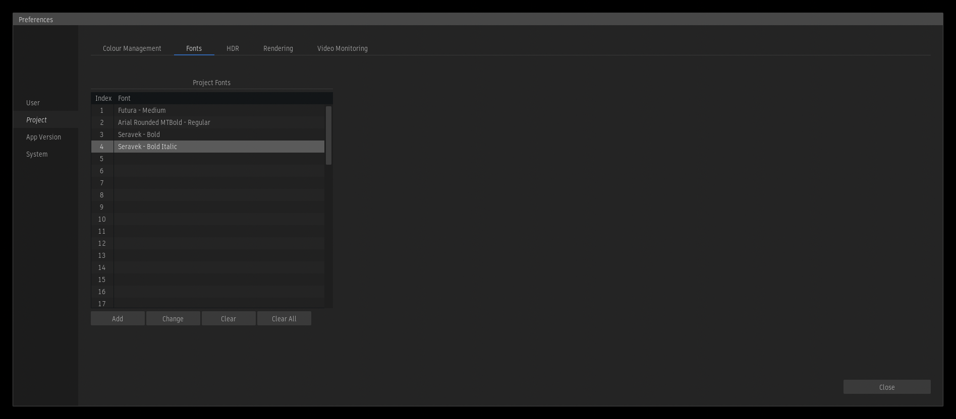 - Project: The fonts defined as project-based fonts in the Project Fonts preferences.