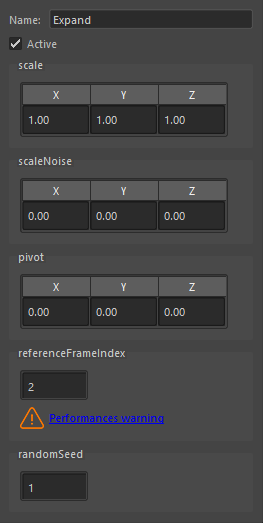 The Expand node allows to increase or decrease the distance between the affected Entities.