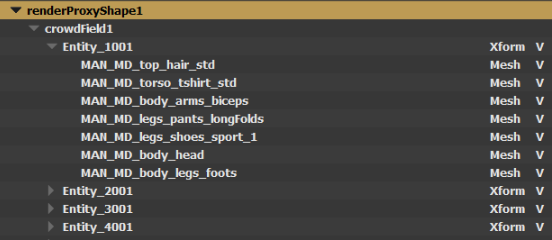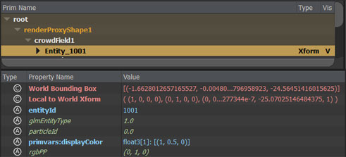 - cacheName.proxyNodeName.usda which stores all the parameter values of the Crowd Render Proxy required to render exported Simulation Caches as Crowd Characters. Details about this .usda file can be found here.