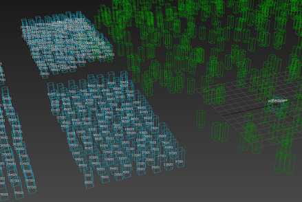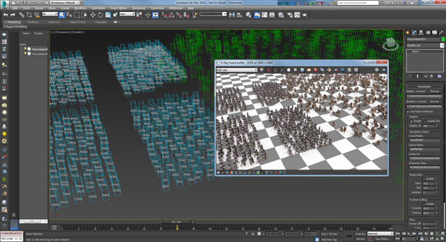 Those parameters will also enable to display the Crowd Entities as bounding boxes within 3ds Max viewport (notice that frames 0 and 1 are not exported and nothing will be displayed for those) :