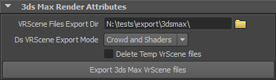 The Crowd Render Proxy node defines attributes to export custom .vrscene files for 3ds Max (in the VRay Attributes):