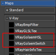 VRayGolaemSwitch and VRayGolaemHSL maps in the Slate Material Editor