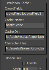 Once the Crowd .vrscene file loaded, the other attributes of the node will be automatically filled according to the content of the file. They now can be edited to change the rendering results (motion blur properties, subdivision attributes...). The 3ds Max node attributes are the same than the Maya node.