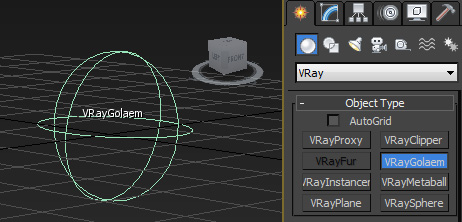 A VRayGolaem node is a 3ds Max proxy object which references a crowd .vrscene file and a shader .vrscene file and handles the rendering of a Golaem Crowd simulation in 3ds Max at render time. It can be created from the Create tab of the Command planel, VRay category, select the VRayGolaem button in the Object Type panel, and then click and drag in a viewport to create it.