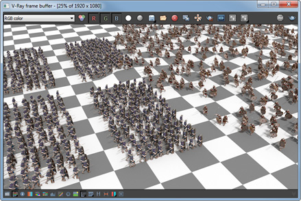 The following workflow will enable rendering Golaem simulations using the V-Ray Adv renderer.