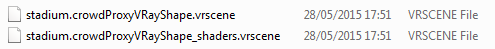 - cacheName.proxyNodeName_shaders.vrscene which contains the shaders used by the exported Crowd Entities.