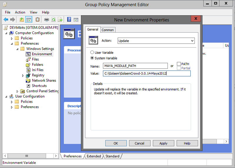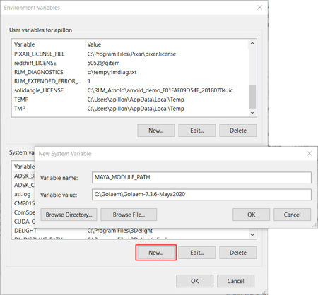 If you are a USER and probably want to setup a network license on your computer, choose to create a new USER variable. This way you will not have to restart your computer, but just relaunch Maya again to take the new variable into account. | If you are a SYSADMIN trying to setup variable at the computer level, you need to create a SYSTEM variable (in our example MAYA_MODULE_PATH for the plug-in to be found automatically, but your variable may be called differently depending on what you are trying to do). For this variable to be taken into account, you need to restart the computer. |