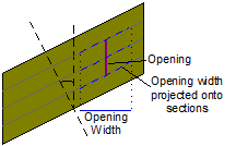 If checked, it is assumed that the width of openings associated with the bridge are measured along the line of the bridge section, i.e. the opening is perpendicular to the section. If unchecked, it is assumed that widths are measured perpendicular to the bridge link, i.e. the opening is parallel with the river. Openings will be projected onto the bridge sections by dividing the bridge opening width by the cosine of the Skew angle. This has the effect of lengthening the bridge opening width. Any piers belonging to the opening are also projected.