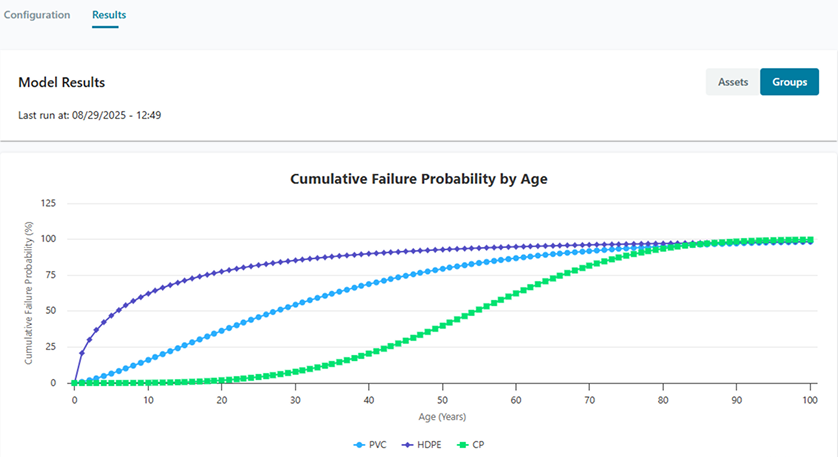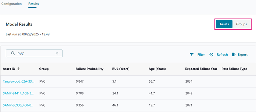 Once you've run your deterioration model, you can view the results per group or per asset.