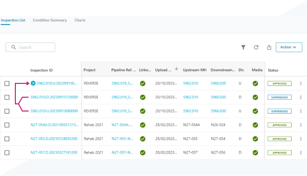 Identify unassociated inspections: To detect any inspections that are not correctly associated to an asset, you can filter on the new 'Linked Asset' column in the inspection list. Inspections cannot be approved unless they are linked to an asset. |