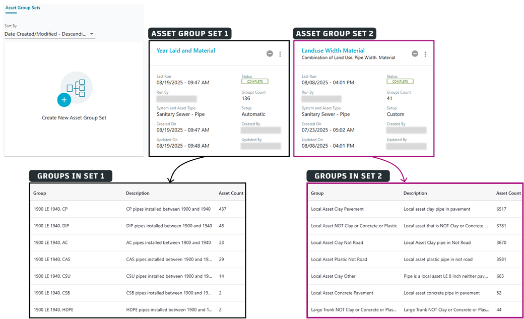 Create asset group sets to group together assets with shared characteristics and use these groups in deterioration modelling.