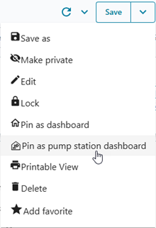 - Click the drop-down arrow beside Save and select Pin as Pump Station Dashboard.