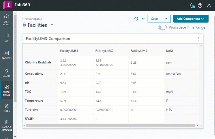 Add a Comparison Table to compare data points for different groups of sensors. For example, to compare the latest sensor readings for different facilities of the same type.