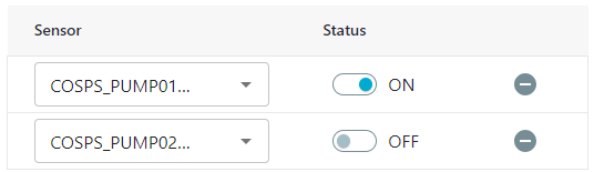 - Under Pump Status Filter, click + Add Sensor and then select from the list of available Status or Setting sensors.
