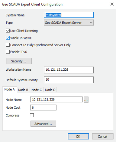 To configure a different port, in the Geo SCADA Configure Connection tool, click on the Advanced button and set the port there.