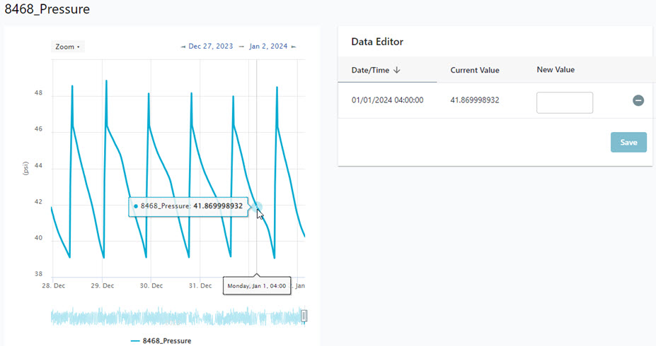 Note: It is not possible to edit sensor data in this way for virtual sensors created from the analytic, mass balance, or ILI tools.
