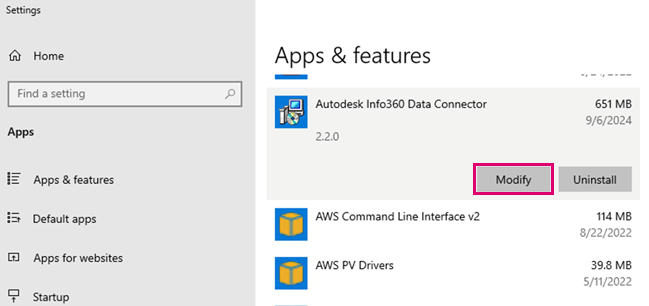 Implementation page. Then, either re-install the data connector or run the MSI Modify operation from the Windows Apps & Features settings page.