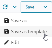 - When ready, click on the drop-down beside Save and select Save as Template.