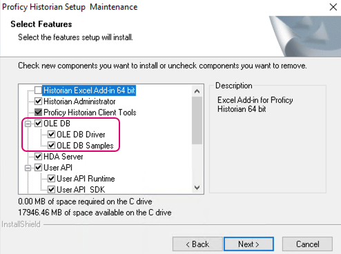 - Make sure the OLE DB drivers are selected and continue with the installation.