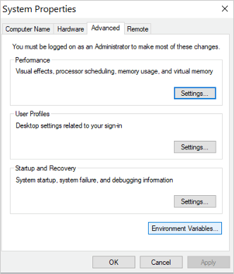 Advanced and select Environment Variables.