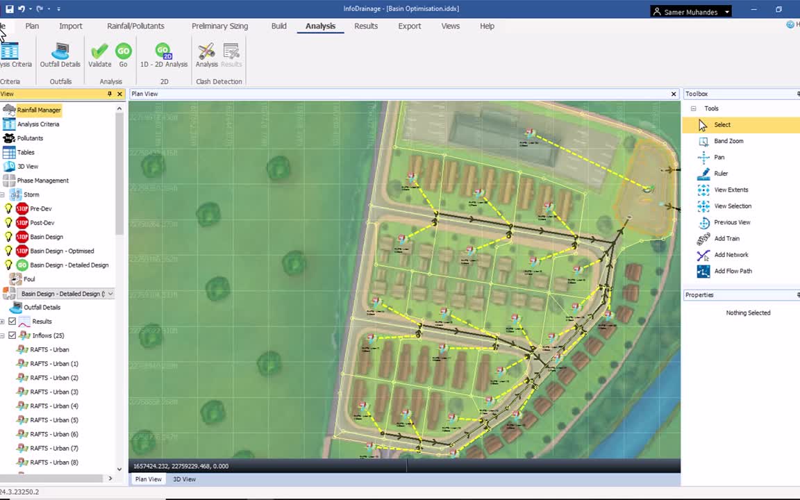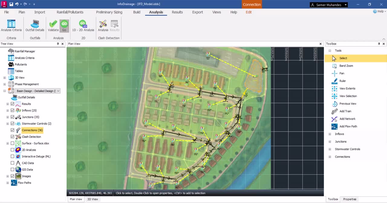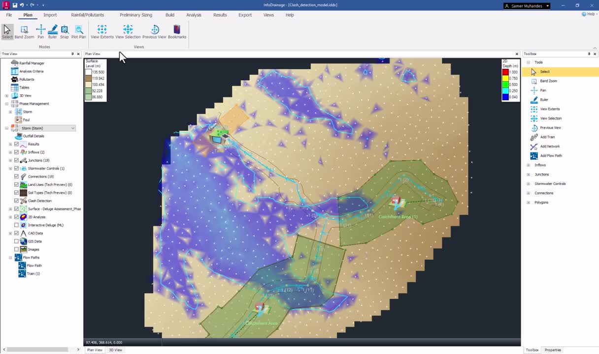 Stormwater Controls with Stormwater Controls: InfoDrainage can detect clashes between different types of stormwater controls. This allows for a more coherent and efficient layout, which is crucial for effective water management and environmental protection.