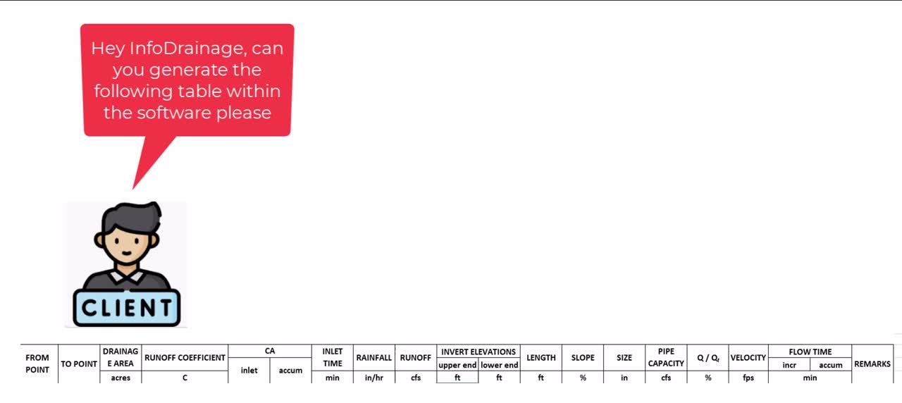 - Manhole Schedule formatted to meet industry standard templates for clear communication with stakeholders and reduced post-processing.