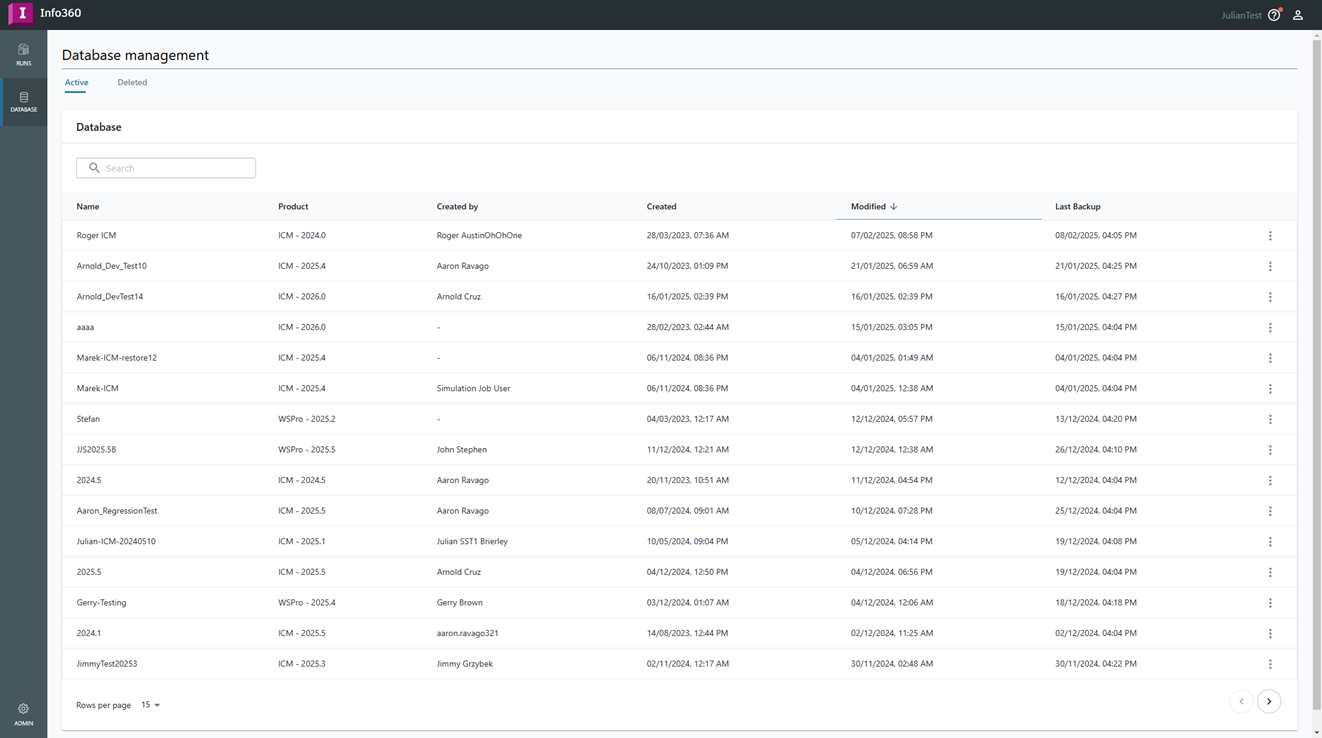 - Restored. Restores data from a backup to a new database. Available to users with Admin privileges.