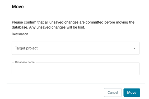 September 2025 | Project Admins can now move a database to another project, provided that they are Admin or have an Editor role on the destination project.