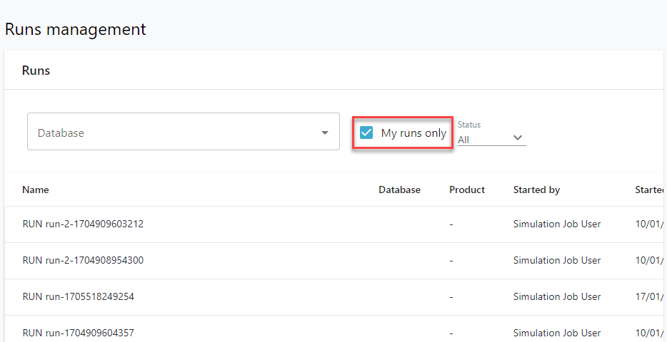 July 2024 | Filter for runs that you made and displays them in the Runs management page.