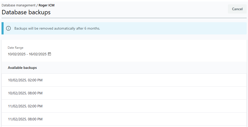 Database backup: Date Range option is added, which allows you to filter the display to only a specific start and end date. |