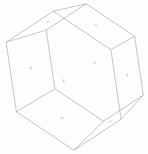 The sample places new sketches and sketch points in the part document. The sketch points are located at the center of all planar faces. For example, a tapered hexagonal solid results in placement of the following sketch points (here shown in wireframe mode):