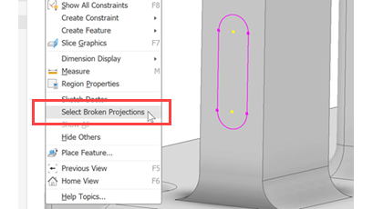 Projected Geometry: It is now possible to select all dereferenced (or sick) projected geometry in a sketch so it can quickly be deleted or looked at for repairing.