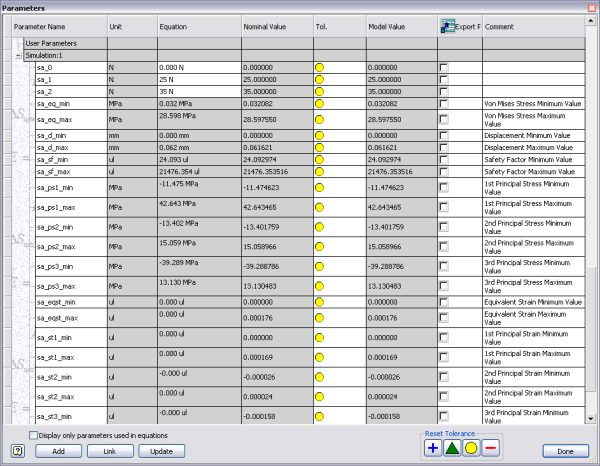 Output parameters of the simulation results are created on demand. The parameters are added to the model parameters. The output parameters are grouped in a folder bearing the simulation name.