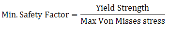 You can calculate a factor of safety as the ratio of the maximum allowable stress to the equivalent stress (von-Mises), when using Yield Strength. It must be over 1 for the design to be acceptable. (Less than 1 means there is some permanent deformation.) When using Ultimate Strength, Maximum Principal stress is used to determine safety factor ratios.