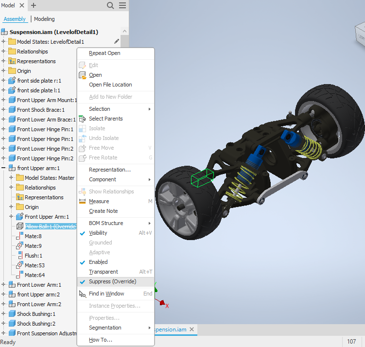 3. Suppress ComponentOccurrenceProxy is not allowed. If a legacy data has a suppressed ComponentOccurrenceProxy then you can only unsuppress it in Inventor 2022 to remove the Suppress(Override) status: