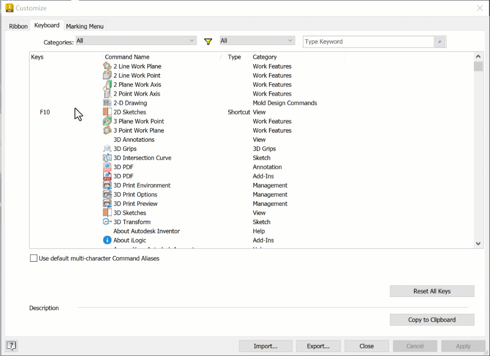 For more information see To Work with Custom Command Aliases and Shortcuts.