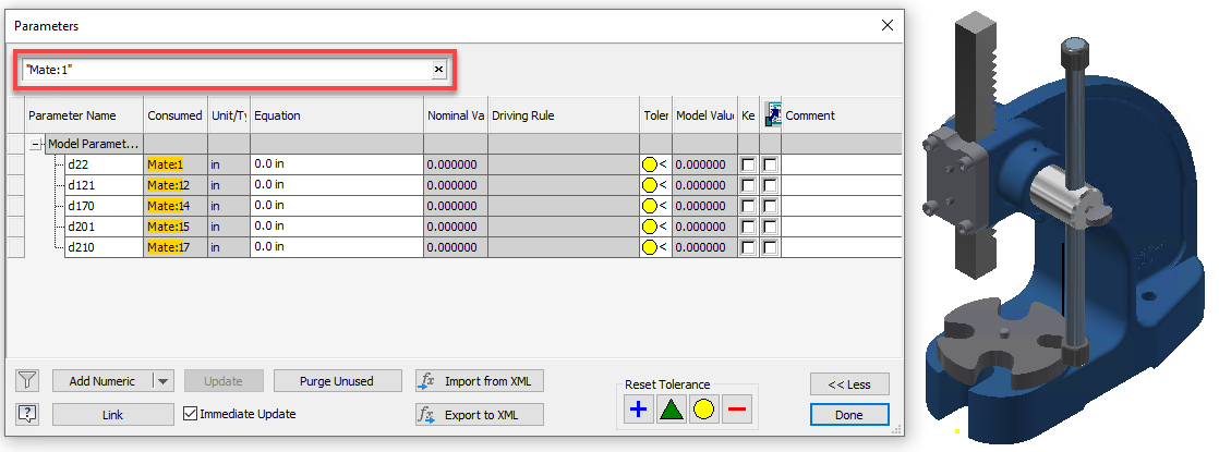 You can now quickly find parameters using a new search box added to the top of the Parameters dialog box. The search results auto-update as you specify the search criteria and highlight the matched search. Search is performed in all parameter fields and you can combine various search criteria or limit the search as needed, in a needed column, for example.