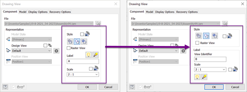 Sketch format: A new "Link sketch formatting from source component" option is added to the Derive dialog. It enables to control if the sketch blocks in the derived part update if the lines in the source part are changed.