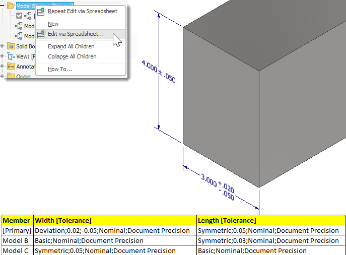 Tolerancing: Model states support the use of unique tolerance settings for each state.